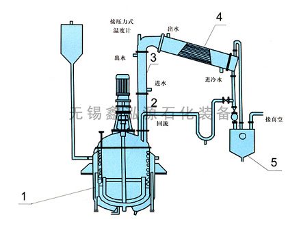 本全套裝置是用于生產(chǎn)不飽和聚酯樹脂、酚醛樹脂、環(huán)氧樹脂、ABS樹脂、油漆的關(guān)鍵設(shè)備。全套設(shè)備由反應(yīng)鍋、豎式分餾柱、臥式冷凝器、貯水器、溢油槽、管線(對(duì)稀釜)等組成,全套設(shè)備與物料接觸部分均采用不銹鋼制作。
